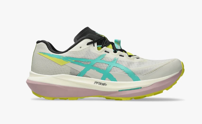 FUJISPEED 4 は、トレイルランニングに必要なスピードとコントロール性の両方を兼ね備えています。ミッドソールには、トレイル専用に設計されたPEBAXプレートを内蔵しており、高い操作性を発揮しながら、蹴り出し時の推進力を生み出します。また、FF BLAST PLUSクッショニングシステムの2層構造で設計されており、軽量でエネルギッシュな走りを追求するとともに、ふんわりとした快適性を提供します。そして、アウターソール素材のASICSGRIPが、さまざまな路面で優れたグリップ力を発揮します。